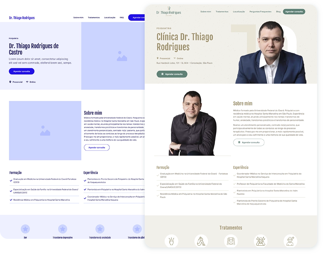 No visual, montamos a estrutura das informações de cada página e depois partimos para o design final.